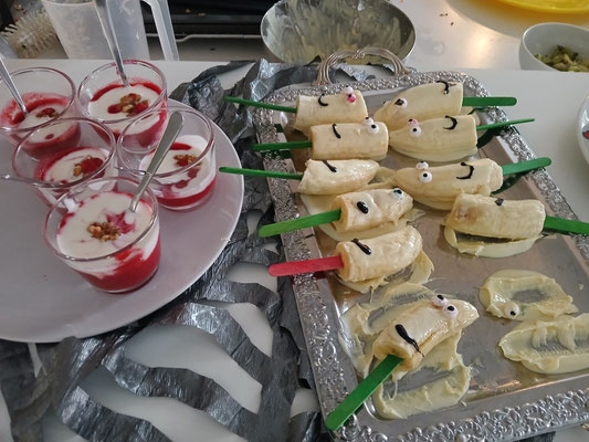 Eine gesunde Jause zum Thema Halloween wurde der ganzen Schule am letzten Schultag vor den Herbstferien von der BV-Klasse kredenzt. So lässt es sich leben, vielen Dank dafür! ;-)